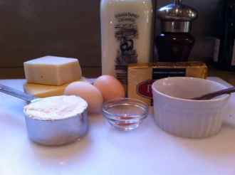 2. Using a medium-sized saucepan at medium heat, combine milk, butter, kosher salt, black pepper and cayenne. Bring to a boil.