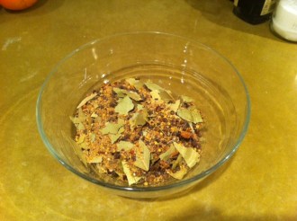 In any event, we are making our own corned beef. Part 1 is curing the meat (a 5lb. brisket) in a brine. While it requires a little planning, so far brining the meat is pretty easy. The only special ingredients we needed were pink curing salt (we have that for making bacon, order here if you need it) and pickling spice. We could buy pre-made pickling spice but made our own. Most supermarkets, and any gourmet market or spice shop, will have what you need. As for equipment, the only requirement is a large container for brining the corned beef. We use a 5-gallon, food safe plastic container. In fact, the most important “equipment” you need is space in the fridge for the corned beef while it is curing.