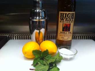 But I am not a Manhattan lover (sorry, too sweet for me), so I experimented with rye cocktails this week. We have lemons and mint in the garden, and I stumbled on the Whiskey Smash, which uses both. It turns out that in the first half of the 20th century the Whiskey Smash was a very, very popular drink. Think “Cosmo popular”. Then it wasn’t. Rye went out of style and the Smash went with it. But Rye is back, and the Whiskey Smash deserves a comeback as well. Then, if there is any karma in the world, maybe the Cosmo will go away, along with the Appletini. One can only hope.