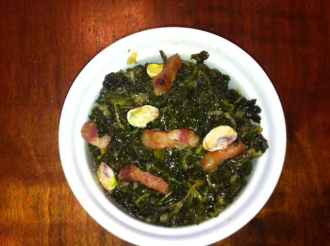 In any event, this is a very flavorful kale or winter greens recipe that you can make any time. We serve the kale as a side dish or place a fried egg on top for a hearty lunch. You can use most hearty greens (kale, collards, turnip, mustard, etc.) in this dish, but adjust cooking time and remove any tough stems before cooking.