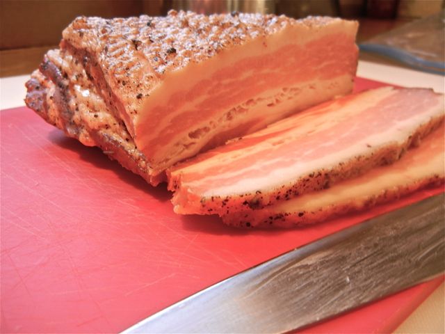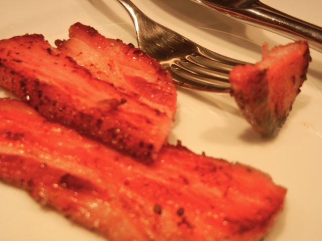 How did the breakfast bacon experiment go? It went pretty well, the bacon was very tasty and we had a good pork belly to work with, so it was very attractive, meaty bacon (yes, I just described bacon as “attractive”). A number of us tasted, and all liked the bacon very much, as it was both sweeter and “porkier” than our savory bacon. The extra sugar also caramelized slightly on the bacon when cooked, which a few of us liked. Continue reading