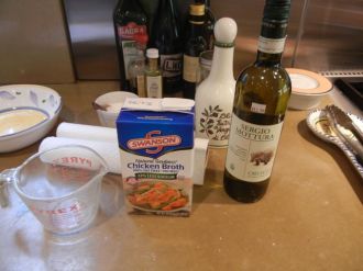 You then add braising liquid, in this case wine and stock. Season as needed.