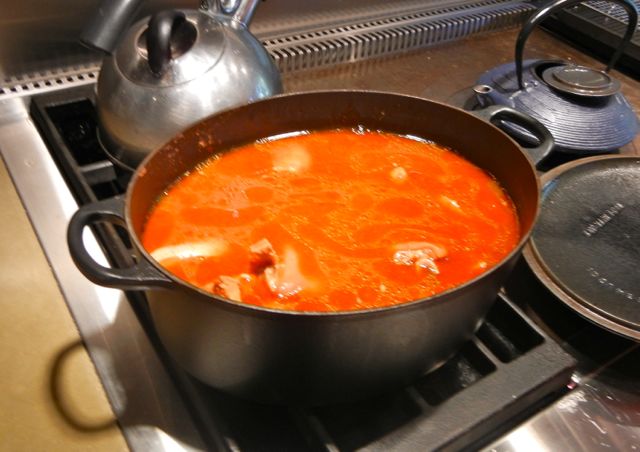 Maricela is a fantastic cook and does some catering, but mostly cooks for family and friends. We are lucky enough to get the occasional treat from Maricela like tamales, enchiladas and “all-day mole” (because it takes all day to make), and the food is incredible. Deep, complex, flavors and textures that few other cuisines can match. And “real” Mexican food is often lighter and more complex than many people might think. Such is the case with today’s dish, Posole Rojo (also spelled pozole).