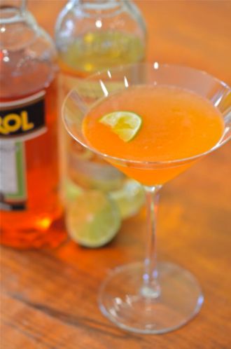 We have a contrarian streak here at Putney Farm, so here are two well-tested cocktails that will fit the themes of the weekend, but offer some variety. The first drink is the Chica Facil (translated: “easy gal”) a mix of tequila, lime juice, Aperol, agave nectar, orange bitters and a lime shell. The recipe comes from the Lone Star Taco Bar in Allston, Mass. via the blog Cocktail Virgin Slut.  The Chica Facil is a variant of the Margarita, but the Aperol and orange bitters add depth and complexity. If you are unfamiliar with Aperol, it as essentially Campari’s little brother, less bitter and sweeter with citrus and botanical notes. Aperol is often used to add some sweet and bitter notes to more “summery” cocktails, and is a great addition to this drink. The Chica Facil lives up to its name, it is easy to make, easy to drink and easy to like, but has something “more” than just the usual Margarita (wink). The color is nice, too.