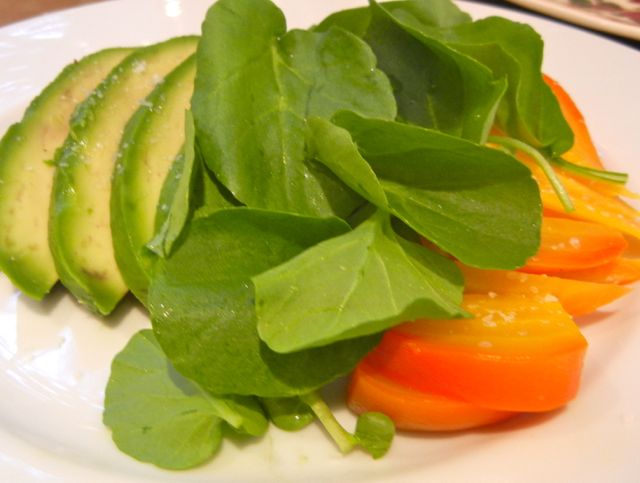 - Slice and peel the avocados and place the slices on the plates (do this at the end so the avocado won’t brown). Add beet wedges and watercress to the plate, with watercress roughly in the center. Then sprinkle with salt and pepper.