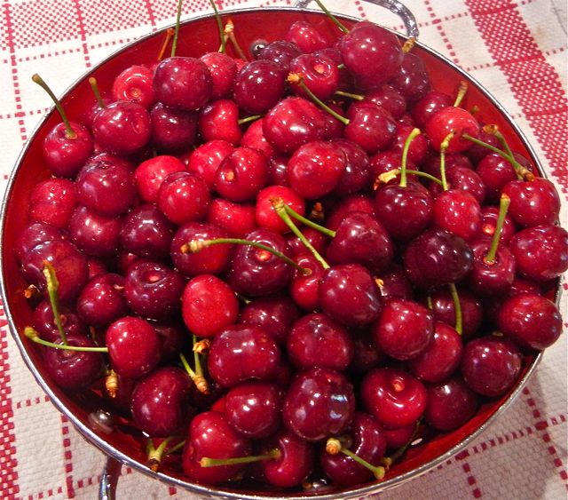 Once we got the cherries in the house, they got a quick clean and rinse. We laid them out on the counter and ate quite a few. The kids enjoyed them and I even made a cherry-lime Caipirinha. Yum. For the next few days we will be enjoying the cherries in baked goods, perhaps ice cream, drinks and even a savory dish or two. Recipes soon.