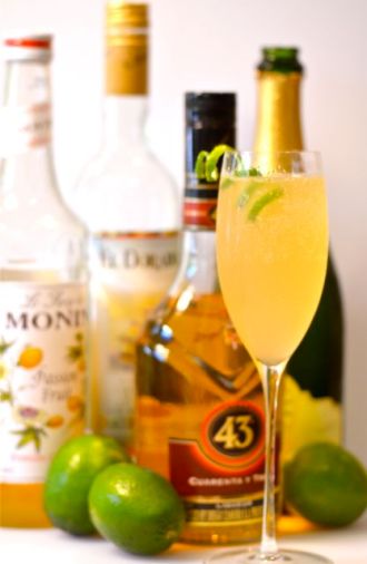 1. Comine the rum, lime juice, passion fruit syrup and Licor 43 (if using) in a cocktail shaker with ice. Shake thoroughly and strain into a chilled flute, cocktail glass or coupe.