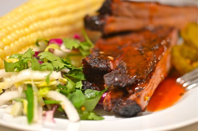 As a Californian, we don’t really have a regional style (unless you count Santa Maria-style Tri-Tip, which is more of a roast), so we get to “pick and choose” a bit. We will cop to a preference for Carolina-style pulled pork– the hot vinegar sauce variety, but mustard-based is good, too. But the kids and many of our friends prefer ribs, and they do take less time, so we make them pretty often. And when we barbecue ribs, we go for Memphis-style.