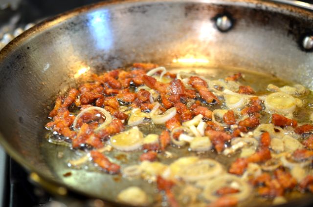 • 2 strips bacon, cut into lardons