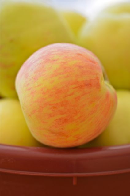 And finally, this leads us to the apple itself. To us, there are few things more beautiful than the Gravensteins. Their colors look like they are painted on by an expressionist painter. All seem similar, but each apple is unique and beautiful. We never tire of their colors.