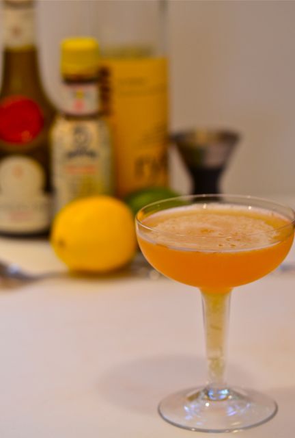 And we say “more traditional” because most citrus drinks that include whiskey or cognac use lemon juice. Meanwhile, most gin and tequila cocktails include lime juice. (Rum plays well with anything and everything, it seems). But rules or traditions are meant to be broken, particularly in the world of food and spirits- so it is fun to play with aberrations like the Junior. And the Junior is a good cocktail. The spice of the rye goes well with the sour lime and herbal flavors of the Benedictine and bitters. But it is a tart sip- we like it, some may not. If you like a smoother and sweeter cocktail, the Frisco Sour with its lemon juice and no bitters might be the best choice. Basically, the Frisco Sour is a more complex (and much better IMHO) version of the Whiskey Sour. But since its pretty easy to make both of these cocktails, try them and decide for yourself.