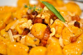 Butternut squash gnocchi with sage brown butter, bacon and hazelnuts.