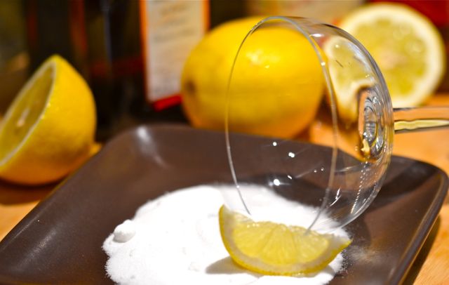 1. Run a wedge of lemon around the edge of the glass and then rotate the edge of the glass in the sugar. Shake off any excess and let dry for a few minutes.