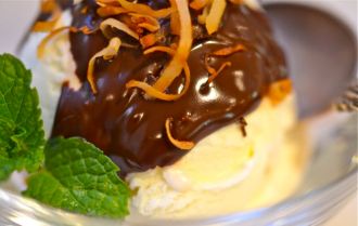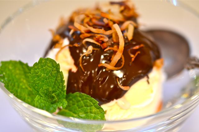 Coconut Ice Cream With Dark Chocolate Sauce: