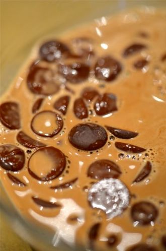 Just like the ice cream, this chocolate sauce is very easy to make. Simply heat a half cup of heavy cream in the microwave until it just boils. Then mix some espresso powder (optional, but good) into the hot cream. Meanwhile, place a cup of semi-sweet chocolate chips into a heat-proof bowl and then pour the cream on top of the chocolate. Stir to combine, this will take a minute, but the sauce will come together- take your time. And if you get a few lumps place the mixture in the microwave and heat for 10-15 seconds, then stir until combined. You can serve this chocolate sauce on just about anything, but we suggest coconut ice cream.