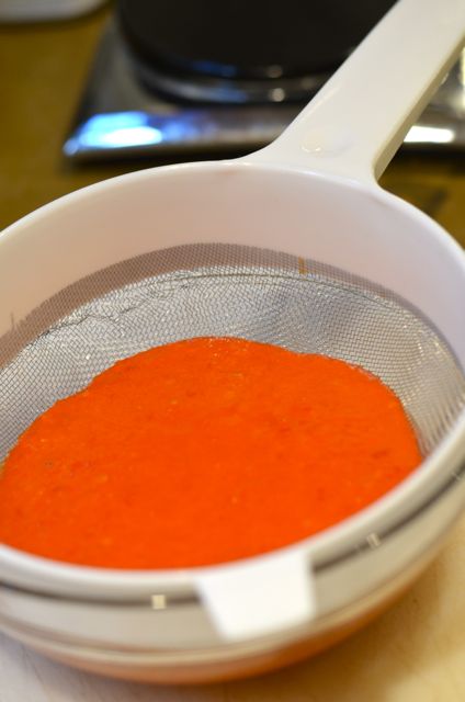 So now that we had the recipe, we made the sauce. But here comes the warning: if you try to make this recipe- make SURE to cook the sauce in a well-ventilated area. Open the windows. Send your loved ones out for ice cream. Be ready to cough a bit. Why? Well, the peppers will send out some seriously hot, caustic vapors when you cook them. The vapor clears quickly, and won’t kill you (but you may wish you were dead if you breathe in too much), but it’s best not to “share” the experience with others.