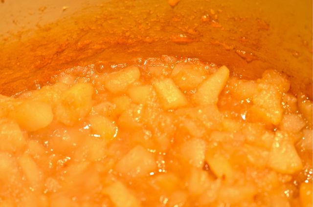3. Return the mixture to the pot and simmer for another 20 minutes or until the pear butter sticks on a chilled spoon (see notes).
