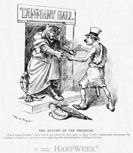 We named our toddy after the famous 19th and early 20th century New York political machine “Tammany Hall”. Tammany has a very mixed reputation, as they were known for corruption, but also representing early immigrant groups. Tammany was also known for getting out the vote, and liquor (along with cash and favors), was certainly a key electoral tool (see the period political cartoon below). We named the rest of the cocktail after the Laird’s applejack we use in recipe. Applejack comes from New Jersey and was a popular local spirit in 19th century New York. Back then dozen of local distillers made Applejack, but these days Laird’s is one of the few options. Happily, Laird’s Bonded Applejack is a high-quality apple brandy that is a worthy addition to any bar. (Yes, we are on a bit of a rye and Applejack jag, sorry).