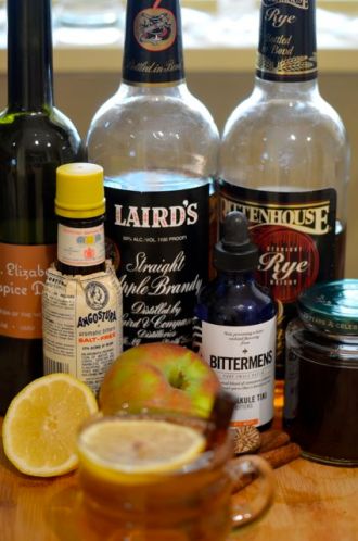 The Tammany Jack is our version of a fall-themed toddy. It combines rye whiskey (or bourbon), Applejack, cinnamon syrup, lemon juice, bitters and hot water (a dash of allspice liqueur is a good bonus). Garnished with a cinnamon stick, a slice of lemon and freshly grated nutmeg, the Tammany Jack not only tastes good, but smells like a blast of holiday spice. A strong, warm and comforting sip. And if you don’t have Applejack or rye, don’t despair. You can make a toddy of almost any spirit or sweetener. Both Liquid Culture Project (Scotch) and Measure & Stir (apricot-infused Bourbon) have good recipes, but any whiskey, brandy or dark rum can make for an excellent toddy. And every bar has sugar, spices and hot water. Toddies are worth a try.