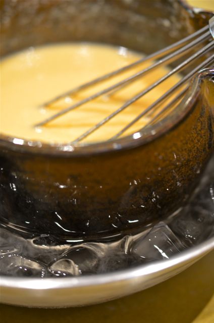 - Gradually whisk the hot mixture into the cream cheese until smooth. Then pour the mixture into a medium bowl or ziplock plastic bag and place the mixture in the ice bath. Chill the mixture, stirring occasionally, until cold, about 30 minutes.
