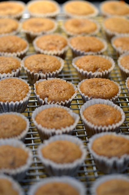 spcake3spcake4spcake7Sweet potatoes in cupcakes? Well yes. They work famously well in biscuits, so why not cupcakes? You don’t taste sweet potato, but mixed with winter spices and orange zest you get a super-moist, caramel-colored cupcake with deep wintry flavors. Topped with sweet caramel cream cheese frosting, this cupcake is good all the way through. And as the oil and sweet potato keep the cake moist, you can easily adapt the recipe for either large or thimble-sized cupcakes with no loss of quality. A neat trick, and something to keep in mind when the size of the crowd may vary.