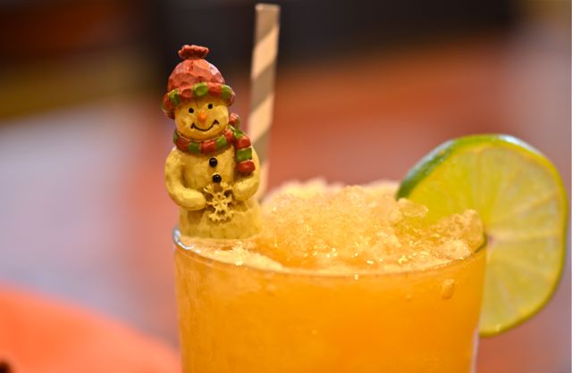 - Place all the liquid ingredients in a cocktail shaker with ice. Shake thoroughly and strain into a large glass or tiki mug filled with crushed ice. Top with more ice if needed. Garnish with a lime wheel and something holiday-themed and overly cheerful. Serve with a loud “harumph!” or “humbug!”.