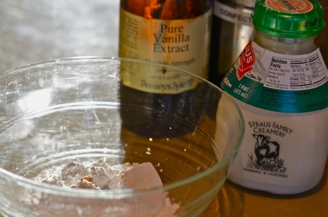- To make the glaze, combine the sugar, vanilla, and enough cream to make a spreadable consistency.