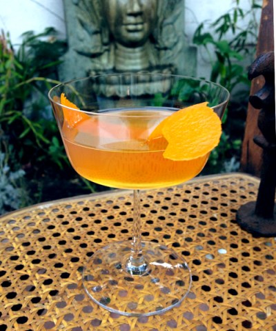 Fred Yarm at Cocktail Virgin Slut gave us our first bitters-heavy cocktail, the Brandy Champerelle. As bitters-heavy drinks are popular in many bars these days, we expected to see more of these, but there were only a few. This cocktail of equal amounts brandy, Curacao and Angostura does show how using bitters as a lead element adds spice and depth but doesn’t always dominate.