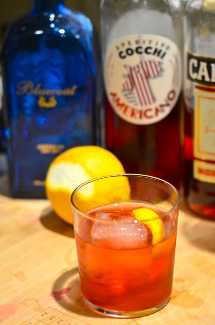 negroni3And even this may be a bit of a hack. Cocchi Americano Rosa is technically an Americano, a type of quinquina (aperitif wine with chinchona / quinine), but it is an easy substitute for sweet vermouth. What makes the Cocchi work better for us is its combination of bright fruit flavors and bitterness from the quinine. Think very good sangria, with slight bitter notes. The Rosa is lovely to drink on its own with some ice, but in cocktails that call for sweet vermouth, it brings lighter and brighter flavors. A fun ingredient to play with.negroni9