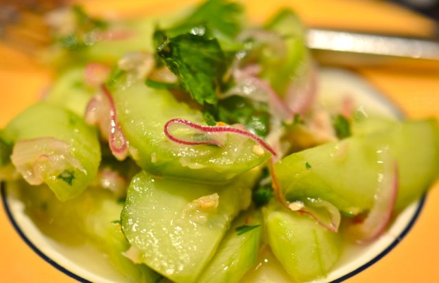 Heheh. Lovely post. This is actually very much like an old Chinese dish that is made to go with hot dishes; a simple de-seeded and chopped cucumber that is tossed in a bit of white vinegar and lots of fresh crushed garlic. It’s one of my favourites; VERY addictive and not one for a pre-meeting lunch. 😉