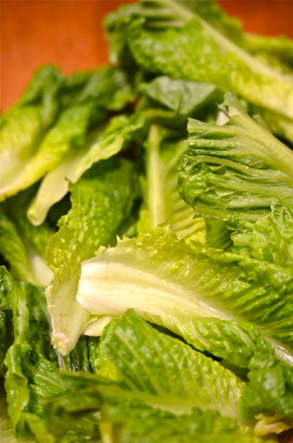 - 2 large or 3 medium heads of romaine lettuce (you need 1 1/2 pounds of usable leaves)