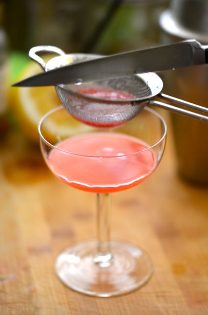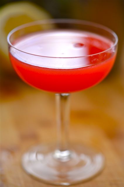 viv9The Viveka combines, boozy limoncello, Cointreau, lemon juice and muddled raspberries (or raspberry syrup, if you must). The drink is a riff on the 1934 Cosmopolitan (an older,  lesser-known- but IMHO better- version of the Cosmo), with the boozy limoncello replacing gin and fresh raspberries rather than syrup. (If using lower-proof limoncello, just add 1/2 oz. good vodka and a touch more lemon juice). What you get is a bright lemon sip that isn’t particularly sour, mixed with sweet orange and raspberry notes that almost seem to dance around. On the finish you get a nice warm kick from the limoncello. This drink has a warm heart, just like Viveka…..Here you go Wivi!