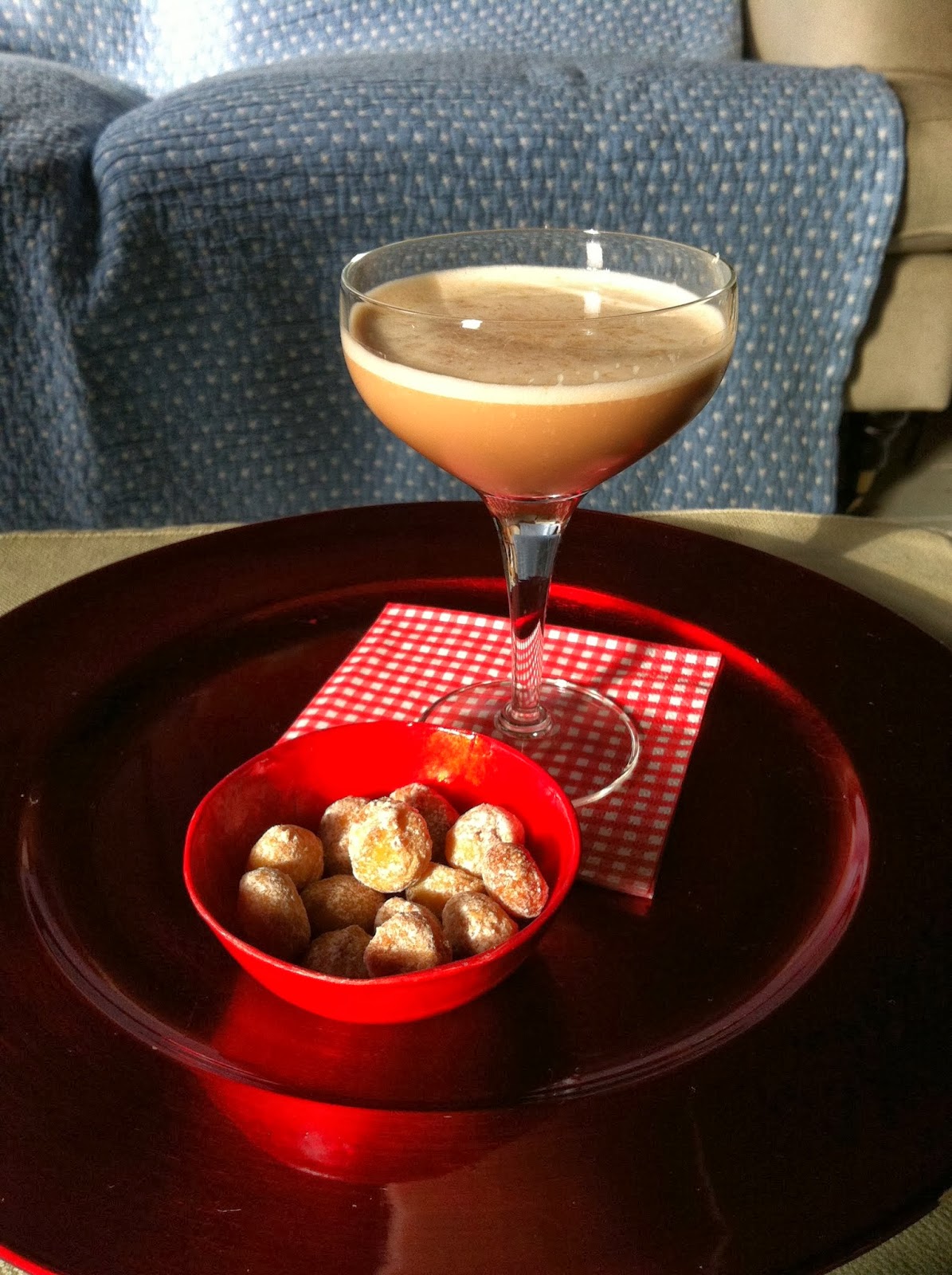 Next we get the Vegan Pisco Sour from Elana at Stir and Strain. She has lovely creations and her photos are some of the best we have seen. For this cocktail, not only do we get four continents, but some cool info on using beer as a substitute for egg whites in “foamy” cocktails. For vegans, good stuff. For us, a tasty drink. Everyone wins.