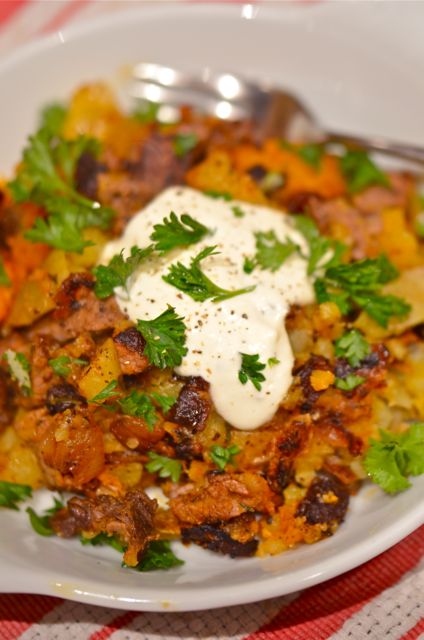 We thought about doing a Thanksgiving turkey recipe for the blog, but truth be told, we aren’t big turkey people. We will be making J. Kenji Lopez-Alt’s Sous Vide “Turchetta” (turkey breast made like Porchetta) and a beef roast for the Thanksgivukkah holiday. But we will give you an awesome, and easy, recipe to use up those Thanksgiving leftovers- hash. We suggest you forgo the shopping and serve hash for Black Friday Brunch.