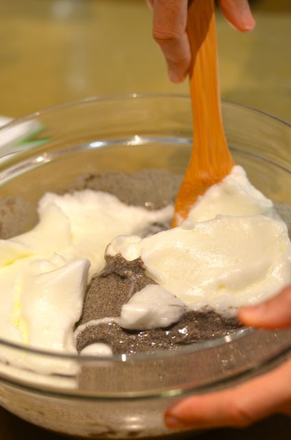 4. In another bowl. Beat the eggs whites until stiff peaks form. Then add the egg whites to the batter and gently fold until combined.