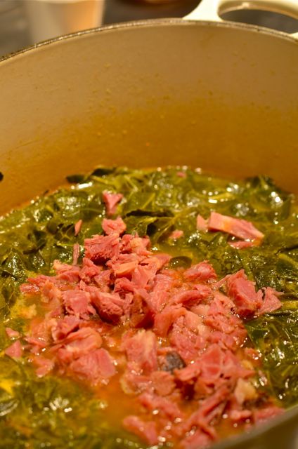 4. Yum–I’ve enjoyed collards all over the South, and they are my special treat (read, the rest of the family won’t join me). I usually use smoked pork neck bones, but shanks are now on my radar.