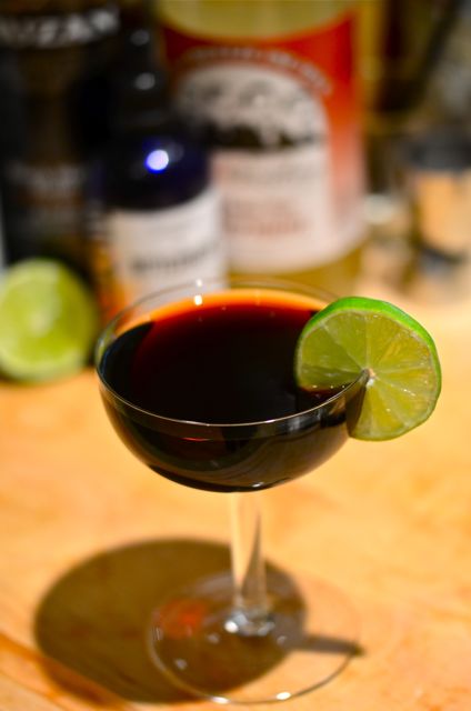 mid4The inspiration for the Midnight Daiquiri comes from a few excellent cocktails. The falernum (spiced lime syrup) and dark rum are from the Corn ‘n Oil, the coffee liqueur from the Port Antonio and the extra bitter notes from Comal’s Black Daiquiri. In each cocktail the common thread is to embrace the flavors of the dark rum, and not hide them. And in the Midnight Daiquiri you get the full spectrum, spice, coffee, maple and, of course, molasses, all playing well together.