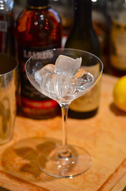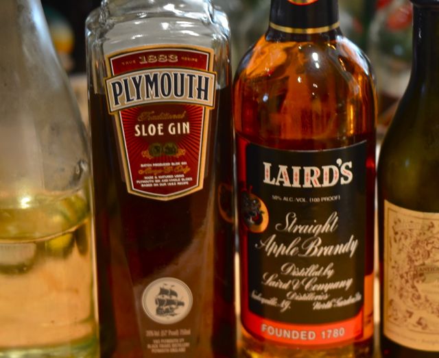Great theme, and we immediately knew that we would be doing an applejack cocktail. Applejack (American apple brandy) was once a staple booze in American mixology and is one of our favorite classic cocktail ingredients. Laird’s Bonded is always in our bar and the basis for our favorite riff on the Old Fashioned (applejack, rye, sugar, tiki bitters or allspice dram). But since this is Mixology Monday, we looked for something new to try.