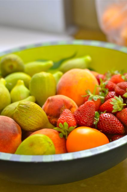 The only hard decision is your choice of fruit and presentation. We used our peaches, strawberries and blueberries and then added some blackberries from the farmers market (our blackberries got fried in the heat wave, sigh). A good balance of tart and sweet. You can use any combination of berries and stone fruits, but we suggest you taste them and adjust the sugar to match the sweetness of the fruit. As for presentation, you can choose a pretty design, or just mix everything together. We chose the latter…it is a “Lazy” Daisy, after all.