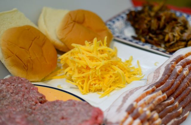 To have a real “Barbecue Burger” you need to have some real barbecue. And since we just pulled pork for Memorial Day, we had leftovers. Normally we crisp up the leftovers for tacos (so good, and worth a future post), but why not put the pork on a grilled burger? And why not add some cheddar cheese, bacon, sautéed onion, real barbecue sauce and serve it all on a buttered and toasted bun?