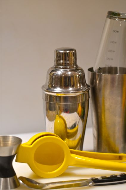 • Cocktail Shaker / Strainer: While most “pros” go with a Boston Shaker (a metal cup and a glass that you seal together) and a strainer, these take some time to learn how to use. Unless you (and your guests) know what you are doing and/or don’t mind cleaning cocktails off your walls, we suggest a cobbler-style shaker. The cobbler shaker has a metal cup with a lid that has a strainer. While it takes a bit more time to strain some drinks, we prefer the cobbler shaker for home use. Both styles of shaker will cost about $10 ( julep or Hawthorne strainers both cost about $5, if you go with a Boston shaker), but before you buy anything look around the house. Cocktail shakers are a popular gift, you (or your friends / relatives) may have one lying around. And as long as it keeps a seal, it’s a good shaker.