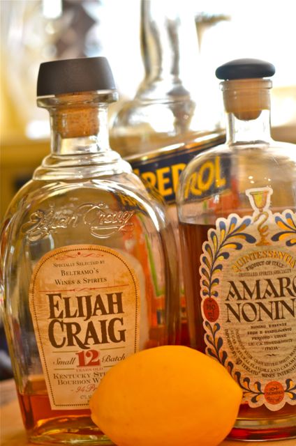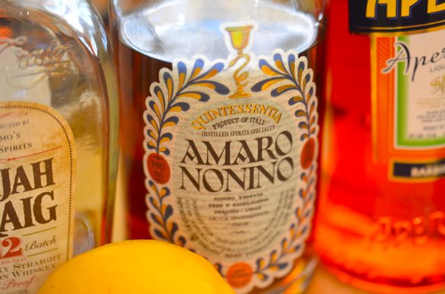 Aperol (which we have discussed in the blog and is one of our favorite ingredients) is Campari’s lighter, less boozy, cousin and features sweet citrus and rhubarb notes with a bitter finish. The Amaro Nonino is a whole other animal. It’s amaro, but it is sweeter and boozier than most and with some fruity notes to compliment the herbal core. Nonino is seriously good stuff and is fun to play around with in all sorts of whiskey-based drinks (Nonino Manhattan variants are very tasty). Also fun to substitute for Benedictine. Along with Montenegro, the Nonino is now one of our favorite amari for mixing. Worth picking up a bottle if you can.
