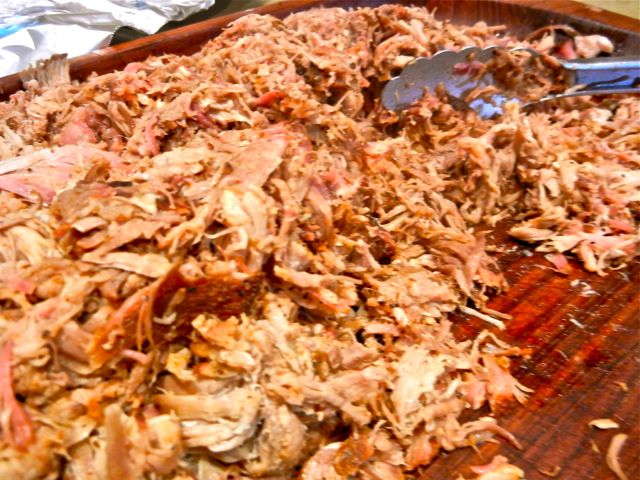 There is one last step that cannot be ignored, regardless of how you cook the pork. After reaching the desired temperature the pork needs to be covered, or wrapped in foil, and rested for at least an hour. The pork will keep cooking but the juices will set in the meat for a better, juicier texture. After the hour is up, just “pull” the pork apart with 2 forks or lightly chop with big knife. The pork will fall apart easily.