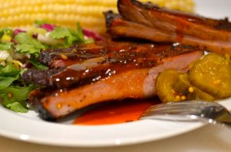 To serve the pork we place a big pile of the meat on an everyday hamburger bun, add some sauce, pile on some cole slaw and finish with a few bread and butter pickles. As for the sauce, we use an adapted North Carolina-style vinegar sauce that is very piquant, but is a bit sweeter and not as bracing. But we suggest you use a style of barbecue sauce you like. And, if you are so inclined, an ice-cold beer is a nice compliment to the pork. In the end, you can serve the pork almost any way you like, you and your guests will be very happy. There is no other dish that says “summer is here, and the living is easy” like pulled pork.