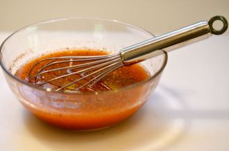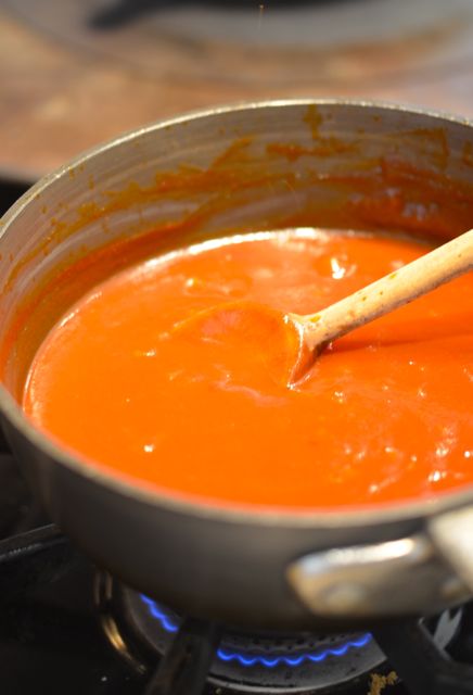 Tasty, easy sauce. Lots of acid, sweet, sour and hot flavors to cut through the rich pork.