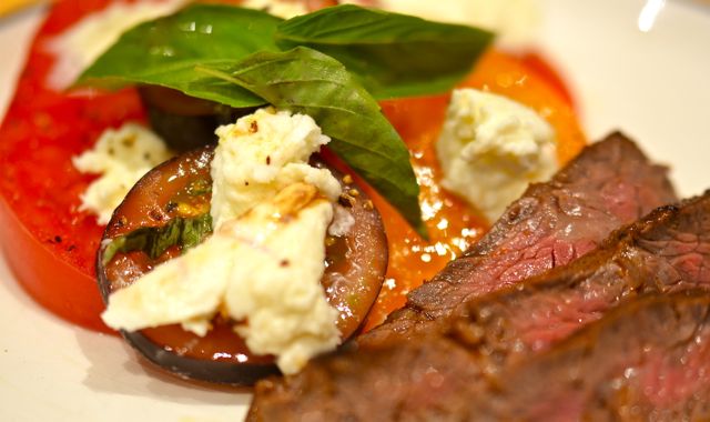 And how do you serve a Caprese salad? Just about any way you want. This dish works as a starter, side salad, or even a main course. Put it between a few slices of bread and you have a great sandwich. We like to serve the Caprese as a large side salad along with a small serving of meat or fish- we are particularly fond of seared skirt steak with the Caprese. And while we love our cocktails, a good bright red or white wine will certainly go well with this dish. A sunny day doesn’t hurt either…