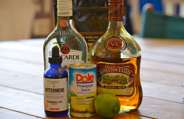 In this case we took the Castaway, a Beachbum Berry concoction of gold rum, Kahlua and pineapple juice, and decided to experiment. The Castaway is a good drink, as the pineapple and coffee play together way better than you might expect. A good sipping cocktail. But since we are often in Hawaii, and the local coffee is awesome, we decided to nix the Kahlua and use leftover Kona coffee as our base.