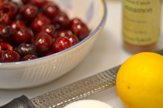 Clafoutis is a French dessert that combines cherries baked in a light batter, often with some added almond flavor. Think of the batter as “flan-meets-pancake” and you can get an idea of the light, yet rich, texture that rightfully lets the cherries star in the dish. Originally clafoutis featured sour or black cherries with the pits still in. Supposedly the pits add extra almond-like flavor, but as we have Bing cherries and like our teeth, we put pitted Bing cherries and almond extract in our clafoutis. You can also use this basic recipe with other stone fruits or berries, but if you want to be technical it would then be a flaugnarde, but feel free to call it a clafoutis- we won’t tell anyone.