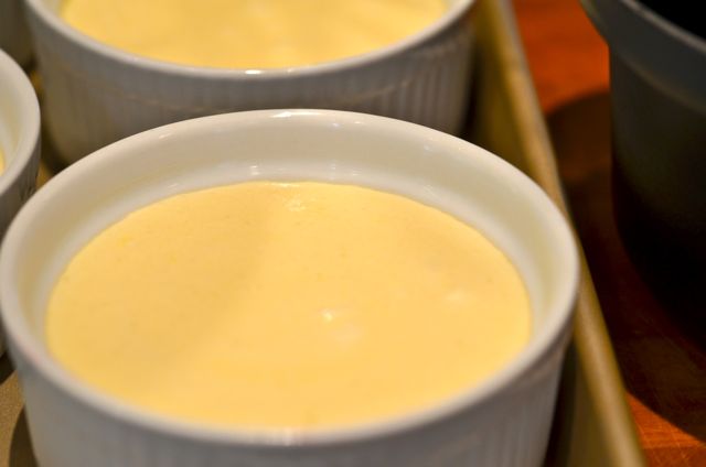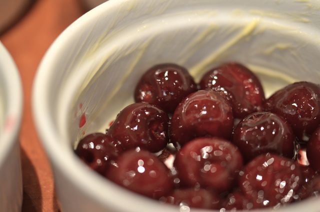 As for the recipe, clafoutis is a classic dish and there are many recipes out there. We chose to adapt an Alice Waters recipe that adds a few extra steps, but also adds extra flavor. In this case we season and pre-bake the cherries before we add them to the clafoutis. The extra cooking improves the flavor and texture of the cherries, but also leaves behind the base of a syrup you can reduce and drizzle on top of the clafoutis at service. Good stuff. We also prefer to cook clafoutis (and many desserts) in individual ramekins, we think it looks good and makes leftovers easier to handle, but a large baking dish works for this recipe as well.