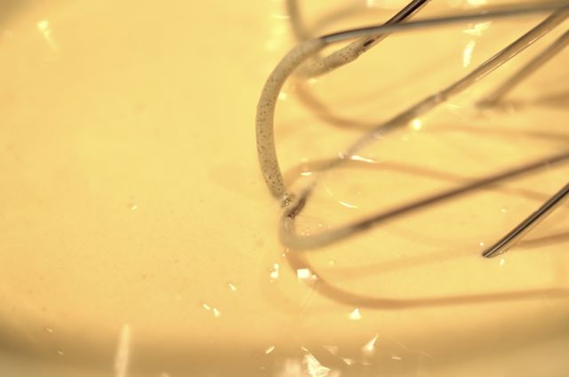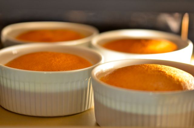 Assembling the clafoutis is a pretty easy affair. Pre-cook the cherries, save the syrup, butter your baking dish(es), place the fruit in the dishes, make and add the batter and bake. The batter is the only part of the recipe that requires some extra effort, you need to whip egg whites and then fold them into the batter for the right texture. The clafoutis bakes for about 20 minutes at 375 degrees. While the clafoutis bakes, reduce your cherry syrup for a tasty and pretty sauce. When the clafoutis is done, add the sauce, dust with powdered sugar and serve.